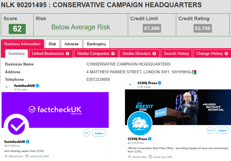 So my concern is that when Ministers who are still in post to run the nation and then make dishonest or certainly deceitful statements, albeit over an election campaign are truly fit for purpose and if they are suitable to be in Government at all. The twitter change by CCHQpress as shown above was according to Michael Gove not a problem because he claims that the one on the left is clearly not an Independent twitter account and it is obvious that it is not. The difference between the one on the left and the one on the right that appeared a few hours later in terms of defining who CCHQ are is very clear. The comment from James Cleverly was at least to blame the CCHQ team led by Alan Mabbutt for making the change and in any case claiming it was perfectly legitimate and Johnson claimed it was below his pay scale or something similar when he was being questioned.
