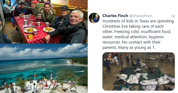 In reality it is not too important how one person spends a few days over Christmas but there are some vital lessons that both men offer and also how they can choose to respond over the first few days when they are both back at work. It remains to be seen if they both will. So to allow people to have a break and perhaps even provide the resources needed to make it easier for people to have holidays is something that the Government could consider, even if holidays in places like Mustique will remain limited to only a few people. This is vital for people who are working very long hours each day and in some cases at night time too. The next lesson is that participating in events to assist volunteers rather than simply turning up for the PR benefit is vital and hopefully Boris will learn from Jeremy on this before he next turns up at a foodbank or a youth club. Finally as the third image shows both men need to speak out to other nations such as the USA on matters that appear to have treated people very badly such as the homeless children in Texas. Indeed perhaps our Government could open up our borders for the childhood refugees that were willing to be accommodated across the nation by many families.