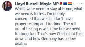 Whilst many of us are staying indoors for most of each day currently and staying at home rather than going to work following the call by Boris Johnson, the sense of how long this will need to be and what the impact will achieve is getting very hard to understand. So the comment by Lloyd Russell-Moyle on twitter late yesterday outlined a factor that could give people a great deal more understanding and actually could improve matters dramatically by comparison to the current situation we are all now facing. There are many businesses that cannot easily work from home and whilst most businesses had already sent individuals home if they were very vulnerable or if their work could be transferred to their homes without a major loss to the companies income, the truth is that such an arrangement is very hard for the rest of the business community where their working role demands being in a specific building or out on locations where the work is delivered.