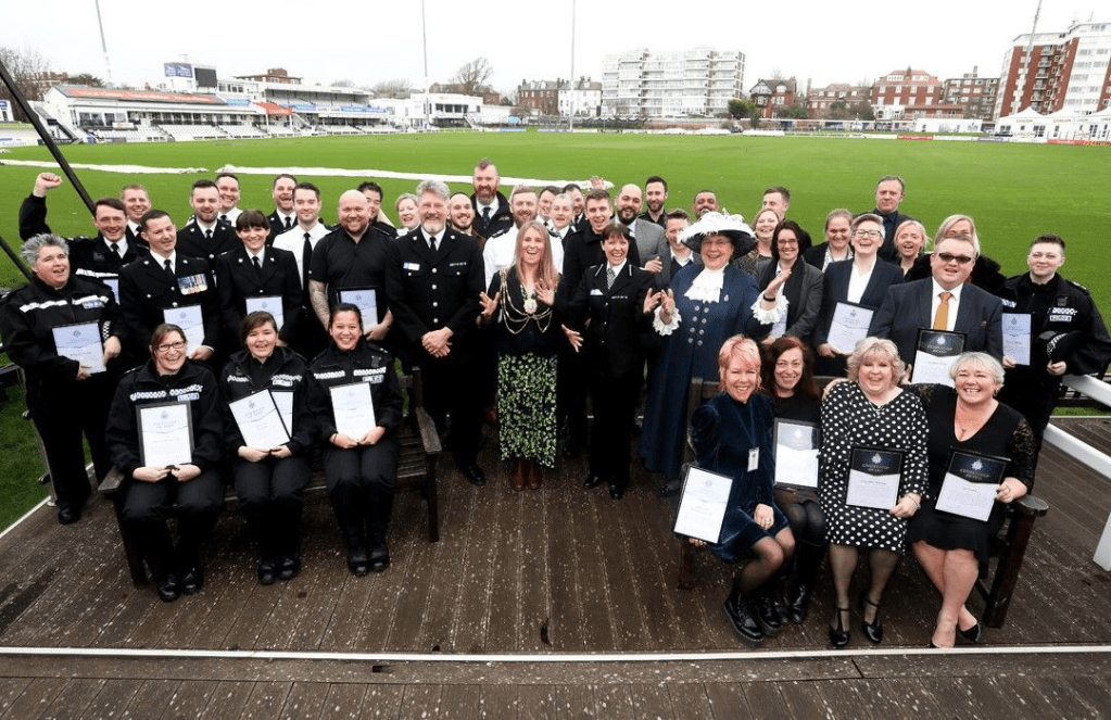 Steve is someone I and my colleagues in our business have worked for for a number of years, but when he has stopped working at his local School, he then volunteers to work for Sussex Police and in this picture he is with his friend Paul who he clearly works alongside. Although I don’t know Paul, he also deserves a clap and in fact I do know a large number of other people who work for Sussex Police, Surrey Police and I also know one or two people who work for other Police services. A few weeks ago I had the privilege to attend a prize giving event for the Brighton and Hove division of Sussex Police and that photo on the right hand side is made up of the people who we applauded at the time, but they deserve more applause now as they are also grappling with COVID-19 on our behalf. In the photo there are also people from Brighton and Hove Council and a local bank that had worked to prevent someone from having money stolen from their bank account so they also deserve our applause.