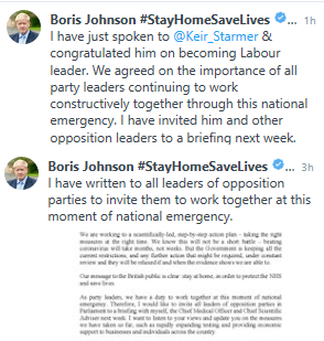 I am not a member or even a supporter of the Labour Party although for many years they were the only party I had voted for consistently. Nevertheless I value the hard work carried out by Jeremy Corbyn and John McDonnell over recent years and I equally value Keir Starmer and Angela Rayner. If these two people prove to do a better job under similar circumstances than their predecessors then we can all be very grateful for their election. If Boris Johnson uses this day and their election to begin to do a much better job of protecting our nation from the COVID-19 disaster with the help of the other parties then we can really look forward to a much better future than we had yesterday when he was refusing to engage with other parties.