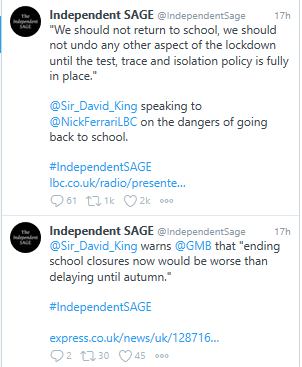 Do we go to School, go to work, go to Parliament simply because science is being ignored, or do we pay attention to SAGE and other credible agencies and place our hands in the air and demand that Rees-Mogg and Johnson send different messages out and behave differently (which includes saying goodbye to Cummings) or prepare to step down and allow other people to make the decisions. Our nation is already the most deadly COVID-19 nation in the world based on the numbers per population, we clearly need to avoid things getting any worse.