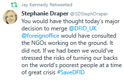 The news this week that the Government has announced it will merge two of its Departments when they are supposedly working flat out to resolve issues related to COVID-19, BREXIT and their 2019 Manifesto seems very strange. Given that the merger will also frustrate many people who are working on the frontline of overseas agencies suggests that they are determined to create as many problems as they can to either justify their own failures elsewhere or distract people from other issues. Stephanie Draper who wrote this tweet is the Chief Executive of Bond which is the UK network for organisations working in international development across the rest of the world. Given that Bond was not consulted nor the organisations within their network regarding the merger this seems very concerning. However she is not alone as many other people working in a range of settings are deeply angry that such an act is being proposed. In addition there is no indication in the 2019 Manifesto that there would be any mergers for Governmental Departments and in the context of Foreign Aid which is what DfID does for our nation there was the statement in the manifesto: