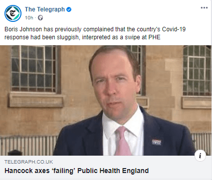 Since I first wrote this blog I saw a tweet from a friend of mine who was retweeting a message from Dr Phil Hammond who wrote “@PHE_uk is under direct control of @MattHancock. If it has failed, he has failed. The National Institute for Health Protection is simply the Health Protection Agency we used to have before it was merged into @PHE_uk in 2012 with 40% budget cuts. Hancock will still be in charge”