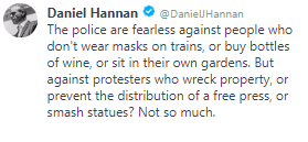 It is certainly vital that the way in which the Police deal with groups of people, just as they deal with individuals can vary quite a lot depending on the police officers themselves as well as the people they are dealing with. However the way in which people are dealt with does not reflect on any sense of fear. Occasionally Police Officers do make mistakes although given the huge number of actions that are made every hour this is hardly surprising as they are human beings and on far too many occasions Police Officers are placed in a position which involves a severe threat towards them and sadly on some occasions they are killed as we know very well. One of the challenges that the Police are faced with is that rules and recommendations regarding COVID-19 have been made by Government Ministers, often without any checks made by Parliament. This certainly has a bearing on the first items of Daniel Hannans comment. All of the other issues have not changed over many years and the Police are certainly not dominating people nor fearful of people in most cases. Where these things do go wrong occasionally the Police are accountable and will be assisted by their IAG’s and PCC’s and the Home Office. Criticising them via twitter happens all the time from many people. However someone like Hannan should not do this without being challenged. Sadly he does not respond to most people, apart from explaining that he was not their MEP because he did not believe they had voted for him! Now he is a Trade Board advisor he is not accountable to anyone.
