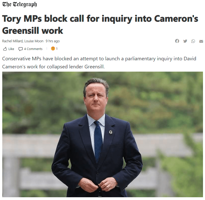 Yesterday David Cameron published a response to the claims and criticisms that have been made towards him and to a lesser extent towards the Government for the way he has used his relationships with the current Government Ministers to try to change decisions over the Greensill company. My reading of his statement raised several issues in my own thinking that seemed concerning. Back on 24th March I wrote this piece about Greensill with this image which emerged a few hours earlier from the Telegraph. The fact that the MPs from his party had blocked a call for an inquiry was deeply concerning and it now appears that the Government has reversed that blockage which is clearly very important. As a result of that Cameron has published his statement which I obtained from this online piece under the heading of David Cameron’s statement on Lex Greensill lobbying in full – The former Prime Minister has spoken for the first time amid heavy criticism. So at the beginning of his statement David Cameron stated: