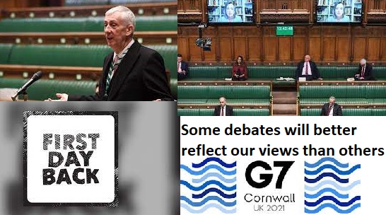 Today is the start of a new half term in Schools and the return to Parliament by MPs after their own week away. This week also involves a visit to Cornwall by representatives of many countries under the title of G7 which our nation is hosting and chairing. This event also resonates with the plans for the COP26 event which we will be hosting in Glasgow in November and co-chairing with Italy. Both of these high-profile international events also resonate with a theme to be raised by a significant number of Conservative MPs today in their call for their government to restore a promise in the 2019 Manifesto. This was