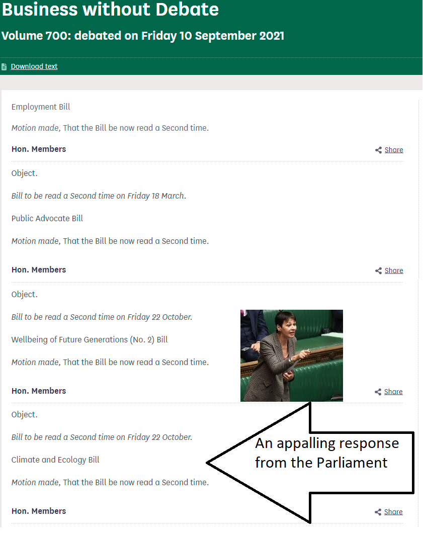 It is very disturbing that at the end of last week, that our nations Parliament failed to provide sufficient time and support for the second reading of a vital Private Members Bill. The Bill was submitted to Parliament by Caroline Lucas who happens to be my MP in Brighton Pavilion and the only Green Party MP in our Parliament. The Bill is called The Climate and Ecological Emergency (CEE) Bill that was initially presented in September 2020 so it is already over a year old. It now contains support from 115 MPs who represent from seven political parties. Tragically so far there are no Conservative MPs who support this Bill which is deeply disturbing, given their party claim that they understand environmental issues. I hope that following last weeks disastrous result that at least one more Labour MP will have endorsed the CEE as so far Peter Kyle does not support it which I find very disappointing. However, I am thrilled that along with Caroline Lucas, that Lloyd Russell-Moyle is endorsing the CEE Bill. Along with the 115 MPs there are currently 29 members of the House of Lords that support the CEE Bill which includes Sandip Verma who is the only Conservative Political representative currently. As well as the MPs and Lords there are currently 103 Councils that have endorsed the Bill, including Adur District, Brighton and Hove City, Lewes District and Lewes Town Councils. I think we could call for more of our Sussex Councils to adopt it. Along with these political agencies there are also four organisations in Sussex that have endorsed the CEE Bill. They are the Lewes Climate Hub, the Mid Sussex CEE Bill Alliance, the Adur and Worthing CEE Bill Alliance and the Hanover Action which is a Brighton organisation that has endorsed the Bill. One of the clear reasons for this Bill getting read for its second time that should have happened on Friday is that it refers to an Emergency that we are all very familiar with. Along with the urgency because of our climate there is also the very embarrassing impact that COP26 will take to our nation in a few weeks while our Parliament has failed to endorse this second reading. Given that several of our local MPs have referred to COP26 in debates one would have hoped that they would have been willing to support this Bill. One of them, Sally-Ann Hart stated back in July “Making a success of the conference and delivering for everyone across the globe is more important than ever.”