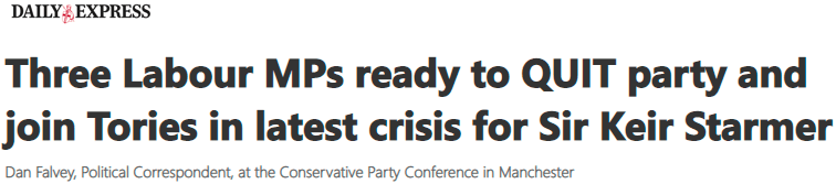 This is not the first time that MPs have decided to reject their party politics and tragically it is not the first time that MPs have decided to leave a political party and transfer to another political party. However this is deeply disturbing. Whoever these 3 MPs are it is very understandable that they and indeed many other MPs have got frustrated with their own political party. A recent pair of cases was the Mark Reckless and Douglas Carswell MPs who were both on the Tory Party and they decided to step down and to join UKIP. Mark Reckless had been second in 2001 and 2005 in Medway for the Conservative Party and then when the new constituency of Rochester was set out in 2010 he won for the Conservative Party. Four years later in 2014 he resigned and won in a by-election for UKIP and that seemed like a very sensible approach. He then lost his seat about 6 months later as part of the 2015 General Election. Douglas Carswell had a slightly different experience. He was the first person to win the Clacton constituency in 2010 as a Conservative MP and like Mark Reckless he then won a by-election in 2014 for UKIP and unlike Mark he retained his post in the 2015 General Election. However he did not stand again in the 2017 General Election. While I have no support for either of these people in either of their political parties. However I fully respect that if they wanted to change political parties that they needed to go back to their constituents and ask them to support their change. Clacton and Rochester did so. However if these three Labour Party members are willing to shift to the Conservative Party they must carry out a by-election immediately!