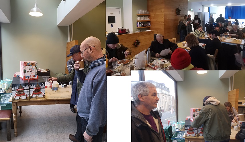 At the first Sunday of each month City Gate Church holds a lunch for a number of Homeless people who are based in Brighton and Hove. Along with the Homeless people some others also attend. Today this month’s event was very busy but also a very positive session. My colleague Miriam was organising the session along with Tim and Lyn who both help organise the event. One of our colleagues, Johnie formed the food this month and that was fantastic. Several of us took part in the event and it was fantastic to obtain more than 50 people today and they enjoyed the food and the Christmas presentation that most of them received and the singing that took place after the lunch.