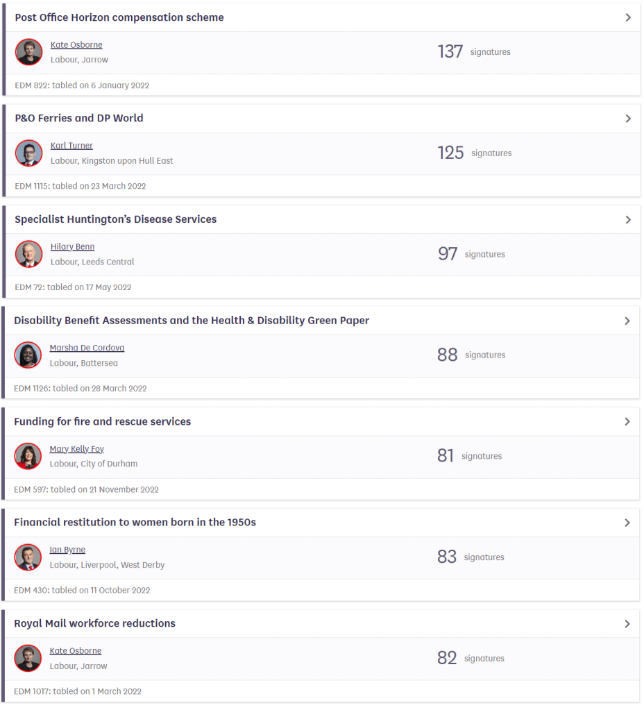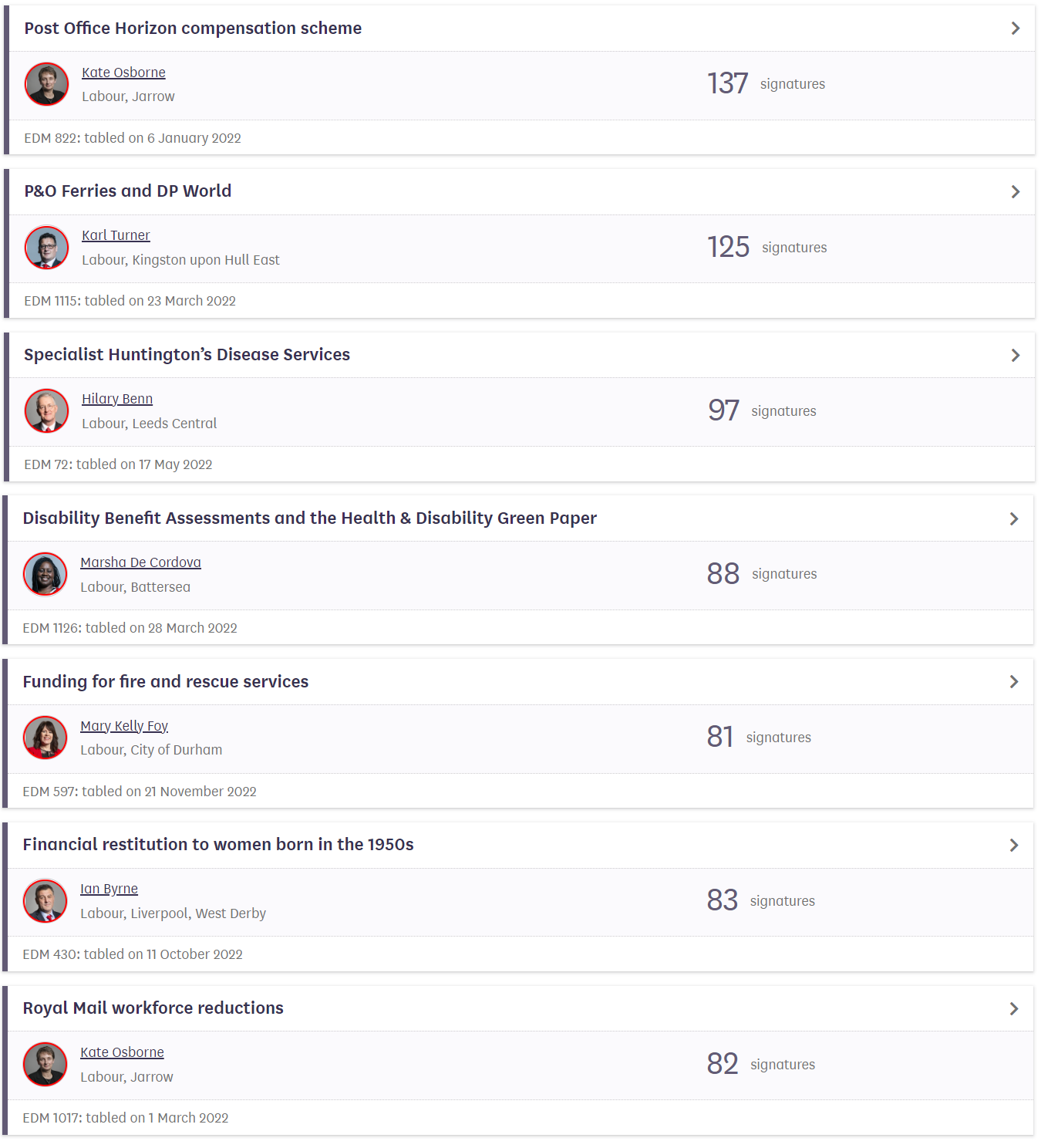 During 2022 the MPs selected a total of 1,123 Early Day Motions and every one of them was invited to be signed by MPs that are not Ministers. There has only been 7 of the whole 1,123 EDMs that received 80 or more signatures. One of these 7 that received more than 80 signatures was an EDM which promotes the Funding for fire and rescue services. This was selected at the 21st November and it is the most recent of any of these significant EDMS. Indeed only one other achieved more than 80 signatures that was established since September. That one is the Financial restitution to women born in the 1950s which was selected in 11th October 2022. The other five units were selected before 17th May which was the date of the Specialist Huntington’s Disease Services. It will be interesting to see what will happen in 2023. The Funding for fire and rescue services EDM which was selected by Mary Kelly Foy is selected in this blog a few weeks away.