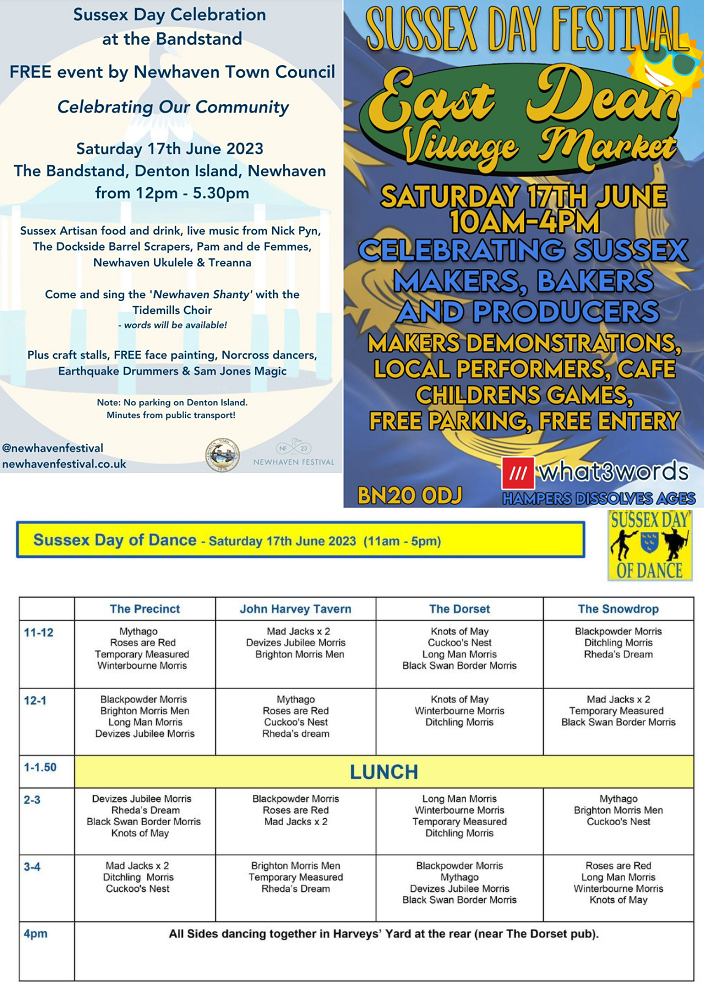 Many of the events that took place yesterday and are taking place today in Sussex focus on the Sussex Day event which takes place on 16th June and other days. It is an annual period of celebrations and festivities across the whole of Sussex for businesses and residents. There is this link on Facebook and some of todays events are shown here in this photo. One of the other key themes in these events is for us to recall the recent death of Ian Steedman who organised the event a few years ago for West Sussex. Sadly he died age 74 on Monday February 6th but we should celebrate him for all he has done.