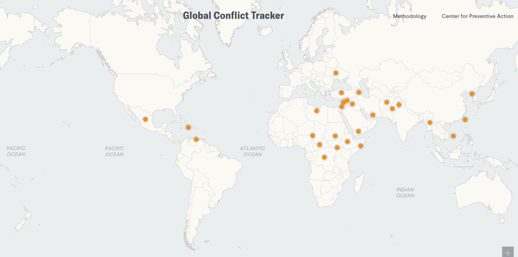 There are currently 27 ongoing conflicts worldwide. The tracker categorizes conflict into three groups: ‘worsening’, ‘unchanging’, and ‘improving’. Right now, there’s not a single conflict described as ‘improving’. Those ‘worsening’ are the wars in Ukraine and Afghanistan, political instability in Lebanon, the war in Yemen, the Rohingya crisis in Myanmar and the conflict in Ethiopia.