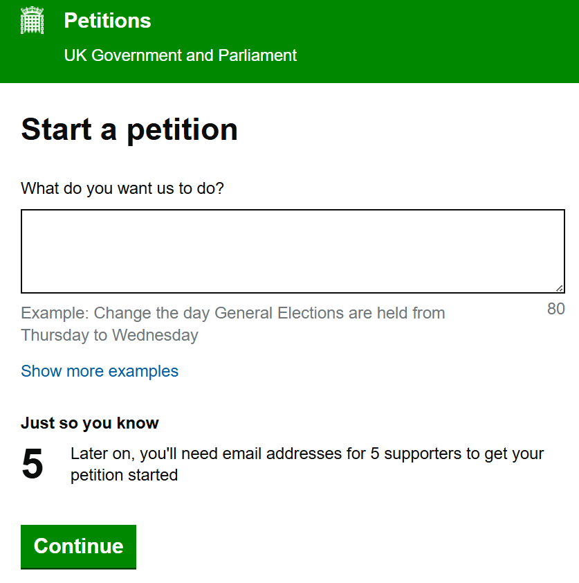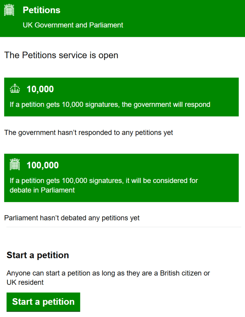 Back in May 2024, before the general election, the Conservatives closed down the opportunity for e Petitions.